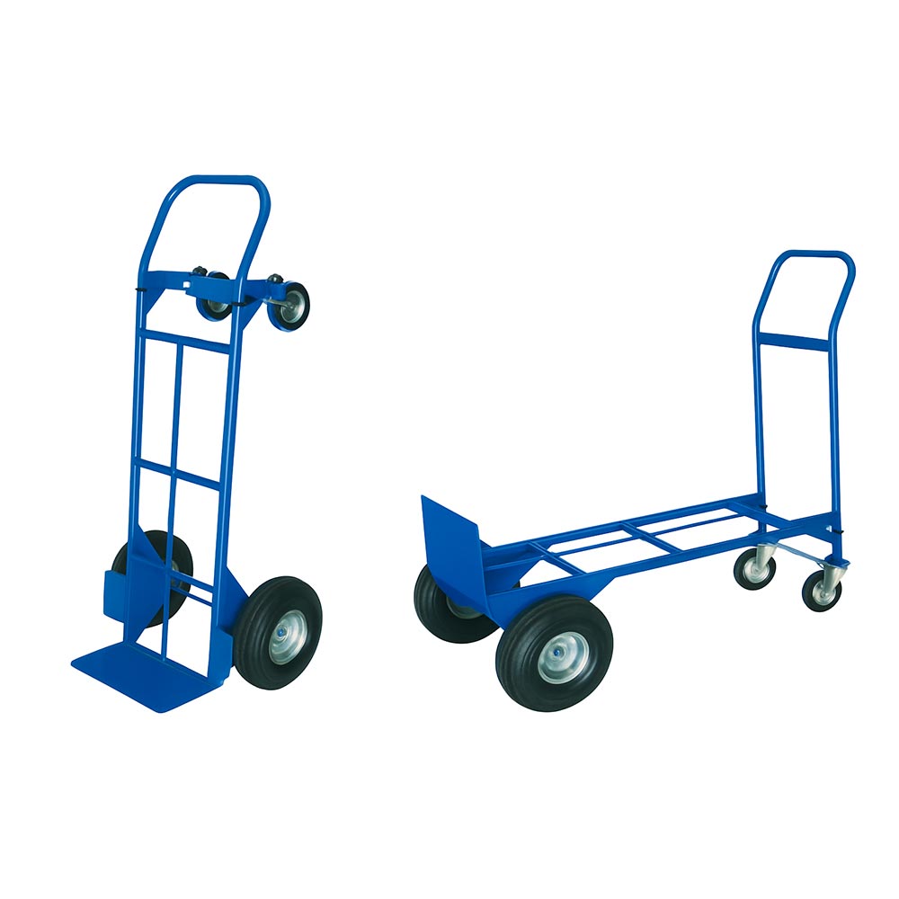 Lietotājam draudzīgs 2-in-1 dizains nodrošina divas funkcijas vienā kravu pārvietošanas ratiņos.